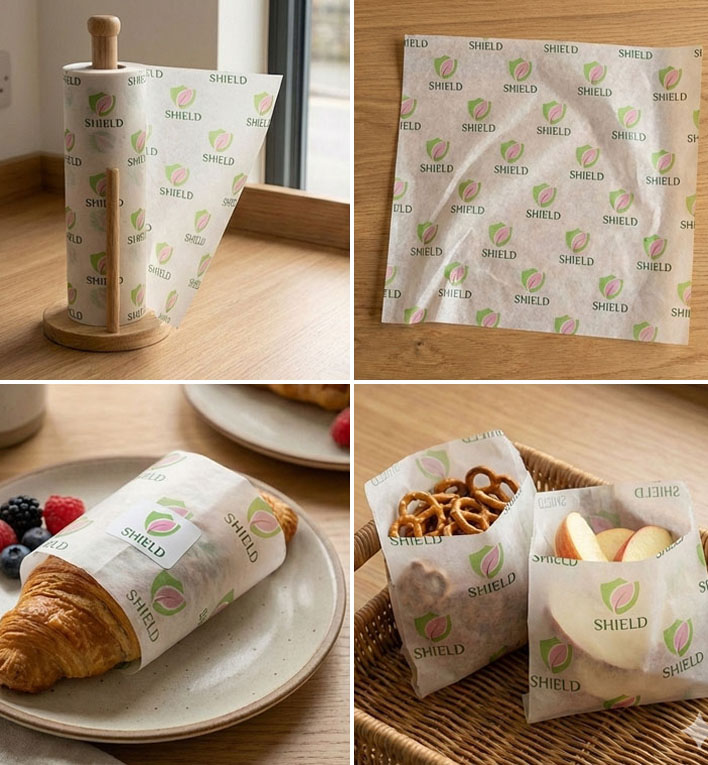Introducing shield- your food’s favourite companion- quiet, safe and easy. Engineered through paper structure, not chemical barriers. Using controlled fibre formation and natural grease resistance, it limits oil and moisture transfer while remaining breathable. This prevents seepage without synthetic coatings.